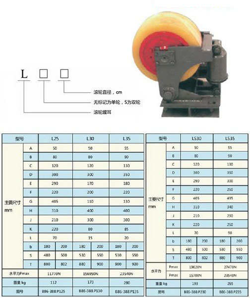 - 滾輪罐耳原理新型滾輪罐耳的工作原理:滾輪通過軸與擺架連接,擺架通過銷軸與支座及緩沖器與復(fù)合調(diào)整器連接,緩沖器與復(fù)合調(diào)整器4通過銷軸與擺架及支座連接,緩沖器與復(fù)合調(diào)整器由殼體Ⅰ和殼體Ⅱ、碟形彈簧、彈簧予緊力調(diào)整螺母、導(dǎo)桿共同組成,通過轉(zhuǎn)動殼體Ⅱ可調(diào)整懸掛長度,從而調(diào)整滾輪位置,用鐵絲可鎖緊殼體Ⅰ、Ⅱ;調(diào)整螺母、調(diào)整工具孔用于插入棒狀工具以使螺紋相對轉(zhuǎn)動;懸掛孔用于與擺架和支座連接。滾輪罐耳以液壓緩沖器取代傳統(tǒng)的緩沖結(jié)構(gòu),承載能力大、運(yùn)行平穩(wěn)、可靠性高、壽命長、調(diào)整維修方便。 滾輪罐耳底座等零部件采用新型材料,整體結(jié)構(gòu)強(qiáng)度更高,抗沖擊性強(qiáng)。 緩沖器復(fù)位壓力小,可有效地避免滾輪與罐道產(chǎn)生異常碰撞。通過杠桿傳遞到減震筒上,同時起到導(dǎo)向、緩沖與穩(wěn)定作用。罐道與罐耳由滑動摩擦變?yōu)闈L動摩擦,因此減少了動力消耗,降低了噪音,罐道和罐耳的磨損也大大降低。從而,提高了罐道和罐耳的使用壽命。滾輪罐耳標(biāo)準(zhǔn)【滾輪罐耳國標(biāo)標(biāo)準(zhǔn)】MT236-2011(國標(biāo)):本標(biāo)準(zhǔn)規(guī)定了矩形鋼雄道滾輪罐耳(以下簡稱滾輪罐耳) 的產(chǎn)品分類、技術(shù)要求、試驗方法、檢驗 規(guī)則、標(biāo)志、包裝、運(yùn)輸和貯存。 滾輪罐耳本標(biāo)準(zhǔn)適用于立井提升容器(箕斗、罐籠、平衡錘)沿矩形鋼罐道導(dǎo)向的滾輪罐耳。發(fā)布日期:2011-04-12 實施日期:2011-09-01 代替標(biāo)準(zhǔn):MT236-1991國家安全生產(chǎn)監(jiān)督管理總局公告2011年第13號引用標(biāo)準(zhǔn):GB/T 700;GB/T 985.1;GB/T 1184-1996;GB/T 1804-2000;GB/T 9286;GB/T 10111;JB/T 5000.3-2007;JB/T 5000.10;JB/T 5000.12-2007;MT/T 154.1;《煤礦安全規(guī)程》 國家安全生產(chǎn)監(jiān)管理總局、國家煤礦監(jiān)察局【滾輪罐耳現(xiàn)場評審必須具備的引用標(biāo)準(zhǔn)】GB/T1972 碟形彈簧GB/T1804 一般公差 未注公差的線性和角度尺寸的公差GB/T1184 形狀和位置公差 未注公差值MT113 煤礦井下用聚合物制品阻燃抗靜電性通用試驗方法和判定規(guī)則熱銷型號:L25滾輪罐耳L25滾輪罐耳-技術(shù)參數(shù):型號: L25預(yù)緊力(kg): 300水平最大緩沖力(KN):12緩沖行程(mm): 13使用提升速度(m/s): 8-12L25滾輪罐耳-主要特點:L25滾輪罐耳輪軸采用橡膠密封語機(jī)械密封相結(jié)合的組合密封方式,膠圈采用高耐磨材料,安全可靠,壽命長。1.支架擺動銷軸裝有高分子耐磨軸套,使用中不產(chǎn)生松動現(xiàn)象。2.緩沖裝置采用符合彈性體緩沖結(jié)構(gòu),性能穩(wěn)定,免維護(hù)。3.可用緩沖裝置來方便的調(diào)整滾輪與罐道間的位置。4.表面防范采用鍍鋅刷漆新工藝,防腐防銹性能好。滾輪罐耳由中間布置一個,左右側(cè)各一個組成一組。滾輪罐耳可根據(jù)用戶要求進(jìn)行設(shè)計。滾輪罐耳-規(guī)格型號滾輪罐耳分為L系列單輪滾輪罐耳和LS雙輪滾輪罐耳。L系列單輪滾輪罐耳型號有:L25,L30,L35,L40,L45;LS系列雙輪滾輪罐耳型號有:LS30,LS35,LS40,LS45。
