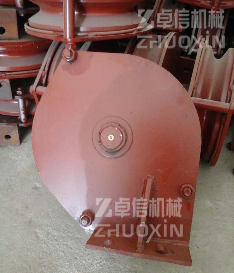 2 尾輪:掛在固定楔上用以引導(dǎo)尾繩,使耙斗返回迎頭,它主要由側(cè)板、繩輪、心軸、吊勾等主要零件組成。
