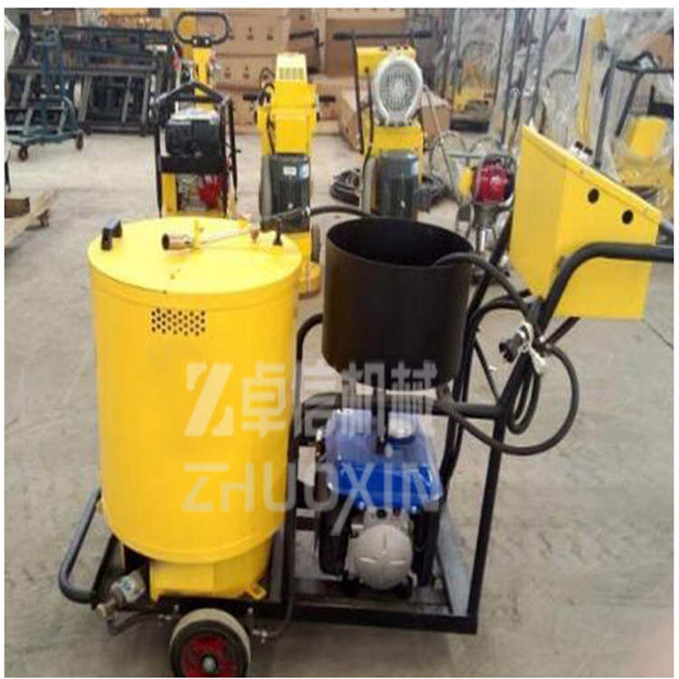 - 灌縫機(jī)用途:用于瀝青或水泥路面裂縫瀝青灌縫。灌縫機(jī)優(yōu)勢(shì)特點(diǎn):1,導(dǎo)熱油間接加熱物料,循環(huán)保溫,進(jìn)口柴油燃燒機(jī)為加熱源,物料受熱均勻,智能傳感器自動(dòng)檢測(cè)溫度,使物料不炭化、不變性,熔化時(shí)間短,經(jīng)濟(jì)、安全、環(huán)保;2,全程電加熱出料軟管,免清洗,彎折度充分,最大程度滿足橫向、縱向裂縫的多項(xiàng)施工需求,以保證最大施工面積;3,全程電子控制,加熱溫度、出料管加熱、燃燒機(jī)工作、瀝青泵工作、燃料狀態(tài)、故障報(bào)警等均為適時(shí)顯示,實(shí)現(xiàn)電子自動(dòng)控制一體化;4,國(guó)際著名品牌發(fā)電機(jī),可以為整機(jī)提供穩(wěn)定、高效的輸出,工作穩(wěn)定、可靠;5,灌縫槍把人性化手柄設(shè)計(jì),在灌縫槍把手上裝有電控開關(guān),可遠(yuǎn)程控制瀝青泵,避免浪費(fèi),衛(wèi)生、清潔;6,高溫專業(yè)瀝青泵,輸料壓力大,物料嵌入裂縫深,施工質(zhì)量有保證,物料流量無級(jí)調(diào)整,適合各種寬度及形狀的裂縫修補(bǔ)作業(yè)。灌縫機(jī)工作原理:汽油灌縫機(jī)主要有手推式和自行式手持灌縫管操作,采用進(jìn)口柴油燃燒器加熱。在工作時(shí)首先在料箱內(nèi)加入瀝青或灌縫膠,啟動(dòng)發(fā)電機(jī)供電,依次間斷打開導(dǎo)熱油泵開關(guān),燃燒器開關(guān),出料管加熱開關(guān);調(diào)整自動(dòng)溫控系統(tǒng)與材料的溫度相同,通過柴油燃燒器自動(dòng)加熱熔料箱內(nèi)導(dǎo)熱油開始升溫(拖式為強(qiáng)制循環(huán))使材料融化,溫度是通過自控系統(tǒng)來控制。溶料時(shí)間大約30-40分鐘左右。在材料融化、出料管溫度達(dá)到后可以進(jìn)行工作。手持灌縫管對(duì)正裂縫灌縫處理。瀝青泵的出料流量可調(diào)。在工作過程中隨時(shí)添加材料保證工作的連續(xù)性。注意:在灌縫前要對(duì)裂縫內(nèi)的塵土進(jìn)行清縫處理。小型灌縫機(jī)采用液化氣加熱系統(tǒng),導(dǎo)熱油循環(huán),使瀝青或灌縫膠快速融化,通過瀝青泵的壓力由出料口出料而達(dá)到裂縫處理的效果。通過壓力注射式灌縫,使材料和縫壁緊密結(jié)合,轉(zhuǎn)向靈活的萬向輪跟蹤裂縫,使灌縫效果美觀。 由于灌縫材料使用瀝青或灌縫膠,在溫度較低時(shí)容易凝固,灌縫機(jī)配有雅馬哈發(fā)電機(jī)組提供整機(jī)動(dòng)力,灌縫機(jī)在出料管部位采用恒溫控制系統(tǒng),避免材料燒焦老化,保證出料的順暢。灌縫機(jī)目前市場(chǎng)基本趨向于功能齊全的大型灌縫機(jī),小型灌縫機(jī)更多用于鄉(xiāng)村公路路面養(yǎng)護(hù)。容量45L。灌縫機(jī)特點(diǎn)(1) 手推式、獨(dú)立動(dòng)力,輕巧實(shí)用可靠(2)熱效率提高2~3倍,縮短了整個(gè)作業(yè)時(shí)間。(3)采用新的工藝和國(guó)外技術(shù),提高了灌縫的質(zhì)量,降低了成本。(4)整機(jī)配備發(fā)電機(jī)組,可以提供充足動(dòng)力。(5)增加攪拌系統(tǒng)使加熱快速均勻。(6)適用于普通瀝青和灌縫膠材料;灌縫料通過瀝青泵輸出,流量速度可調(diào)節(jié)。(7)出料管道采用電加熱系統(tǒng),有效的杜絕灌縫料在軟管中冷凝問題,同時(shí)減少人工清理軟管的次數(shù)。(8)控制面板集中操作,簡(jiǎn)便省力。適用范圍/灌縫機(jī)灌縫機(jī)主要用于瀝青路面、水泥路面、場(chǎng)地的表面裂縫處理。灌縫機(jī)主要特點(diǎn):1、集開槽灌縫工藝所有功能于一身,可自行、拖掛兩用,其全套的裂縫處治設(shè)備,保證了高效的施工速度和優(yōu)質(zhì)的施工質(zhì)量。2、配裝液壓自行底盤,人工控制行走,比單一拖掛式設(shè)備節(jié)省專用車等額外附加費(fèi)用。方向盤式操控,手控前進(jìn)、后倒,自行時(shí)液壓制動(dòng),調(diào)節(jié)自行速度.3、車載熱氣噴槍適用于低溫潮濕地區(qū),可快速將縫內(nèi)烘干,增加密封材料與縫壁粘結(jié)。4、整套設(shè)備上裝配了車載吊裝機(jī),可在自行底盤上方便裝卸開槽機(jī)。5、恒溫控制技術(shù)的運(yùn)用,確保密封膠材料在加熱和使用過程中不焦化、不冷凝、不阻塞、流膠順暢。6、液晶雙顯儀表盤統(tǒng)一操控,集中顯示油溫、料溫和加熱軟管的設(shè)定溫度及實(shí)際溫度。7、功能齊全、性能穩(wěn)定是市政、高速公路養(yǎng)護(hù)中心處治路面裂縫的理想設(shè)備。灌縫機(jī)主要特點(diǎn):1、手推式、獨(dú)立動(dòng)力,萬向輪,適應(yīng)無規(guī)則縫隙灌縫;2、機(jī)械式組合螺桿擠壓發(fā)熱裝置,料溫穩(wěn)定,壓力式灌入,灌縫質(zhì)量好;3、輔以尾氣、電加熱手段,預(yù)熱時(shí)間短,不燒壞灌縫料;4、小型離合變速傳遞裝置,精配本田發(fā)動(dòng)機(jī),耐用性好,適合班站使用;5、噴油管采用金屬軟管,接觸縫隙灌入填灌料,隨動(dòng)性好。灌縫機(jī)性能優(yōu)勢(shì)/灌縫機(jī)1.傳統(tǒng)熱灌不能防水:普通瀝青的彈性恢復(fù)力和粘接力很差,起不到防水作用傳統(tǒng)熱灌不能防水2.傳統(tǒng)灌縫成本高:短期來看,傳統(tǒng)的便宜,專業(yè)的灌縫投入大;長(zhǎng)期來看,傳統(tǒng)累計(jì)的費(fèi)用高,而專業(yè)的灌縫一次性作業(yè)可使用壽命可達(dá)5年以上3.傳統(tǒng)熱灌不能防水重復(fù)施工:工人長(zhǎng)時(shí)間路上作業(yè),交通事故增加,交通壓力增大;4.傳統(tǒng)熱