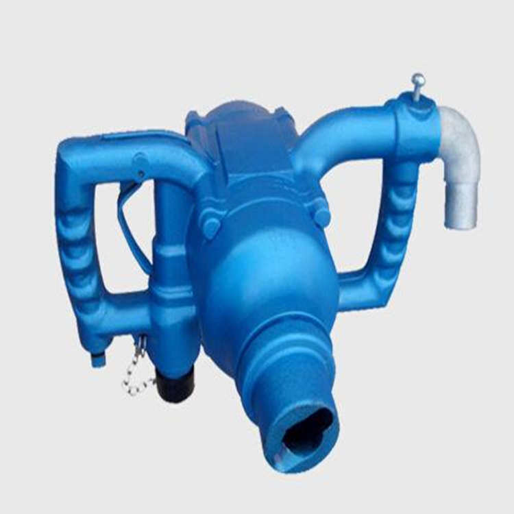 ZQHS-45/2.3手持式氣動鉆機機體兩側(cè)有環(huán)形手柄便于握持,進氣閥及內(nèi)鉤式壓柄控制整體的開閉,機體下部有與氣腿連接的橫孔,握柄內(nèi)安置的注油器用以潤滑氣動發(fā)動機。