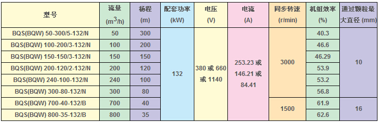BQS(W)礦用隔爆型排污排沙潛水電泵技術(shù)參數(shù):