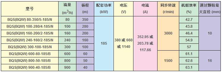 BQS(W)礦用隔爆型排污排沙潛水電泵技術(shù)參數(shù):
