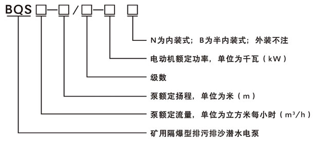 - 產品介紹BQS(W)礦用隔爆型排污排沙潛水電泵是泵和電動機組合一體的電力排灌設備,外型美觀,結構簡單,密封性能好,性能穩(wěn)定,壽命長,安裝使用方便,且可以長期在水下連續(xù)作業(yè),BQS(W)礦用隔爆型排污排沙潛水電泵被廣泛用于煤礦立井、斜井及井底散煤泥地自動化排水。BQS(W)礦用隔爆型排污排沙潛水電泵內裝式電泵,水由電動機夾層中流過,有效的延長了電泵的使用壽命;外裝式電泵,葉輪采用雙流道大過流結構,運行平穩(wěn),排污能力強,防纏繞,無堵塞現(xiàn)象,并且有體積小,重量輕,攜帶方便的特點。BQS(W)礦用隔爆型排污排沙潛水電泵結構特點BQS(W)系列的礦用隔爆型排污排沙潛水電泵嚴格根據(jù)煤炭行業(yè)標準MT/T671-2005《煤礦用隔爆型潛水電泵》、中華人名共和國國家執(zhí)行標準GB3836-2000《爆炸性氣體環(huán)境用電氣設備》設計制作,電動機采用Y型干式隔爆型三相異步電動機,具有啟動轉矩大、運行性能好、噪聲低、體積小、重量輕、維護方便等特點,以及優(yōu)良的隔爆結構性能和較高的防護等級,BQS(W)礦用隔爆型排污排沙潛水電泵適用于含有甲烷或煤塵等爆炸性氣體環(huán)境、有爆炸危險的礦井下采掘面及巷道等場所與水泵配套使用。BQS(W)礦用隔爆型排污排沙潛水電泵采用O形橡膠密封圈作為靜密封,結構性能好,采用橡膠硫化曲線控制技術保障了O型圈耐潮防老化的質量及密封性能。動密封采用兩套機械密封,并有油室隔離保護,有效地為轉動摩擦副提供潤滑,形成流體膜潤滑保護,同時釋放在運動過程中積聚的熱量,從而延長了機械密封的使用壽命,確保了密封性能。BQS(W)系列的礦用隔爆型排污排沙潛水電泵的流體部件材質采用耐磨合金鑄鐵,水泵部分采用流體機械設計及平衡技術,有效的延長了電泵的使用壽命。BQS(W)2.2KW的礦用隔爆型排污排沙潛水電泵用途含有甲烷或煤塵爆炸危險的煤礦井下采掘工作面排水煤礦立井、斜井施工排水礦井無水倉井底主排水主井井底散煤倉自動排水老塘、無人區(qū)涌水自動排水煤礦井下含有煤塵、泥沙等較小固體顆粒的地下水排放清水倉排水救災搶險排水城市環(huán)境系統(tǒng)中污水排放處理使用條件輸送介質溫度應不超過40℃含固體顆粒的介質、其體積濃度一般不超過2%輸送介質pH值在4~10范圍內工作環(huán)境溫度0~40℃水泵潛入水深值不超過5m介質中固體最大粒直徑不大于水泵流道過流斷面最小尺寸的50%