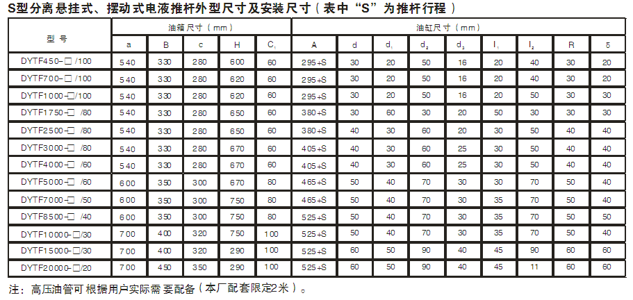 - DTYF型分離式電液推桿即電動液壓推桿,適用于往復推拉直線(或往復旋轉一定角度)運動,可用于上升、下降或夾緊工作物的場所,DTYF型分離式電液推桿也可用于遠距離及高空危險地區(qū),并可和計算機聯(lián)網進行集中(程序)控制。DTYF型分離式電液推桿常用的結構型式有DYTZ整體直式電液推桿,DYTP平行式電液推桿,DYTF分離式電液推桿。DTYF型分離式電液推桿現(xiàn)已廣泛應用于冶金、礦山、煤炭、電力、機械、糧食、水泥、化工、水利、運輸等部門,是不可缺少的通用動力源。