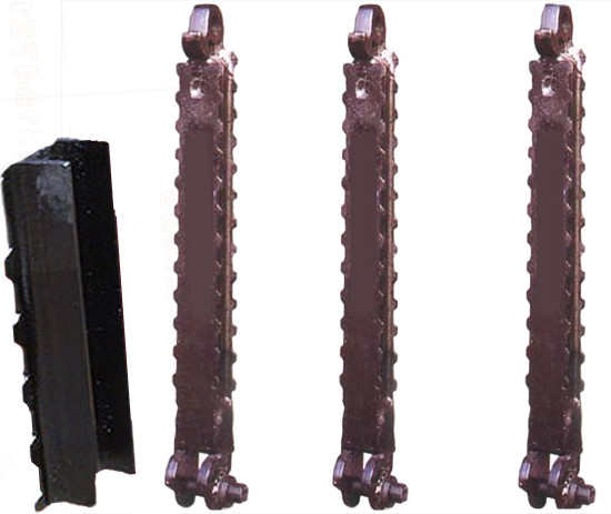 雙楔頂梁是一種鉸接式的頂梁,它可與各種類型單體金屬支柱配合組成金屬支架,供煤礦在水平及緩傾斜回采工作面支護(hù)的一種高強度頂梁。雙楔頂梁由于這種頂梁能懸臂支護(hù)工作面煤壁前邊的運輸機道上面的頂板,使煤壁與支柱間有較大的無支護(hù)空間。故為采用新型采煤機械和可彎曲運輸機,實現(xiàn)采煤一般機械化提供了條件,是高檔普采和新高檔采技術(shù)必要配套設(shè)備.