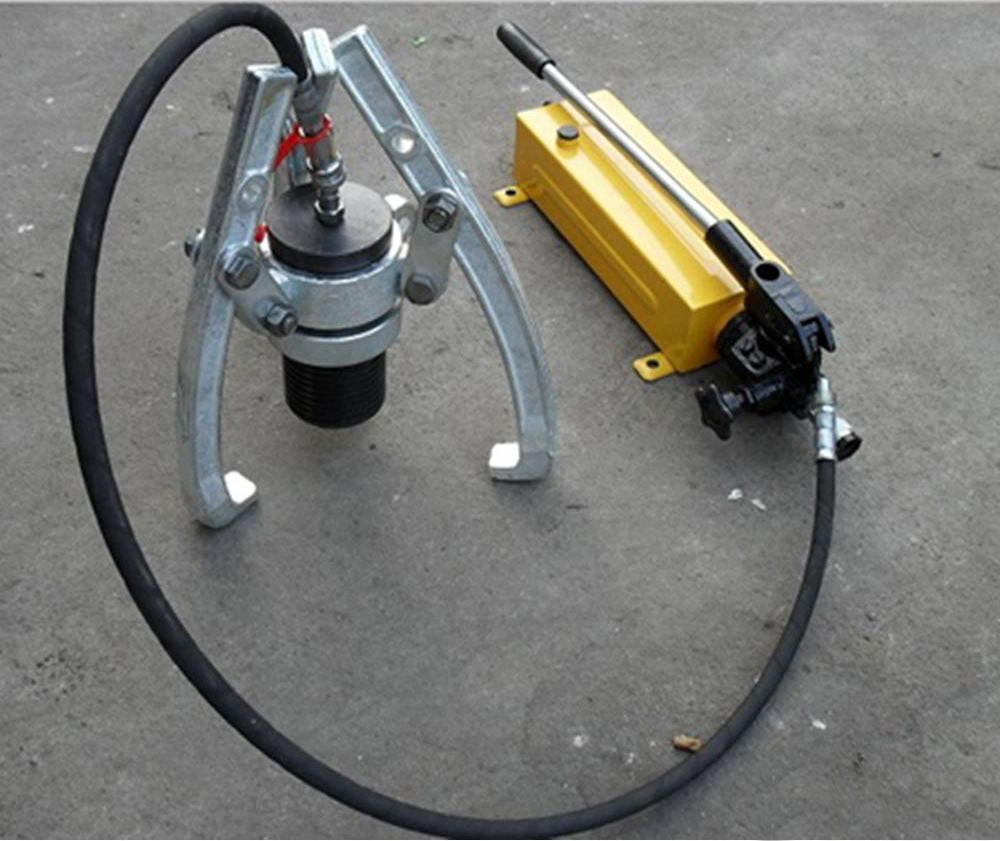 4、若使用時需要活塞起動桿伸距大于液壓拉馬活塞起動桿有效距,則需要在伸出距接進最大有效距時停止,松開回油閥桿,讓活塞起動桿縮回去,調(diào)好后再次重復(fù)1-3步,直到拉出為止;