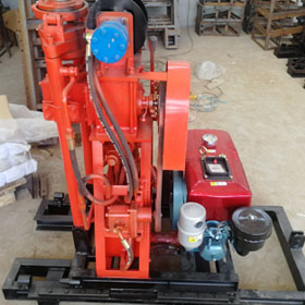 YQZ-50A小型液壓鉆機品占地小,重部件不超40公斤、質(zhì)量輕一個人即可搬的動,安裝前先把底座固定好,然后把汽油機與減速機放在底座上。